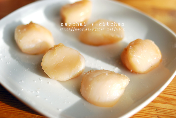 回到室溫的干貝,廚房紙巾擦乾表面水分,